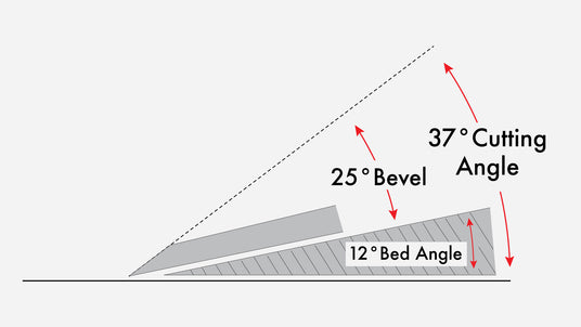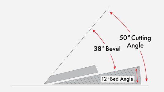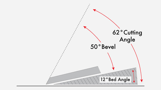 The 50 degree blade produces an effective cutting edge of 62 degrees. This very high cutting angle is ideal for smoothing figured timbers where tear out is a problem. Set in the block plane, this blade is great for working isolated patches of tear out smooth or for shaping delicate decorative pieces made from figured wood.
